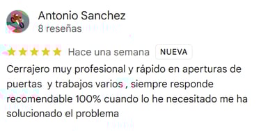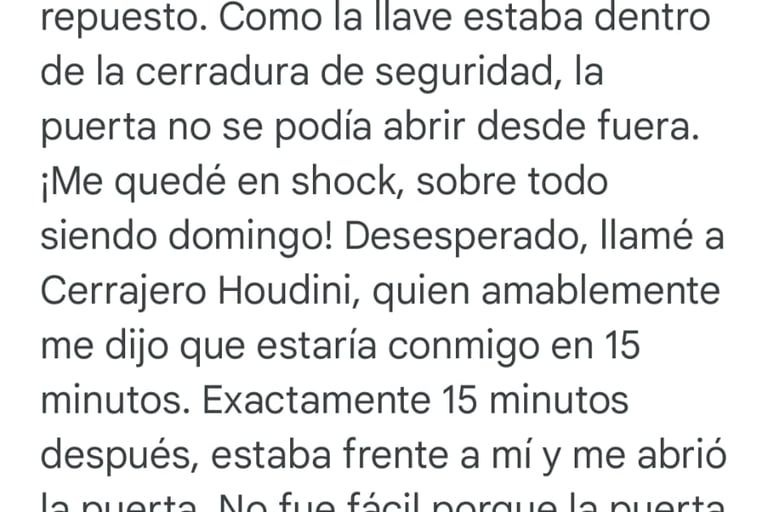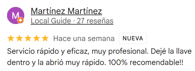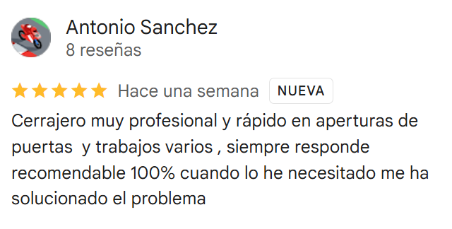 A día de hoy, sigue ofreciendo sus servicios con la misma entrega de siempre. Está disponible las 24 horas, los 7 días de la semana, para ayudarte en situaciones de urgencia: puertas que no se abren, cerraduras que fallan, llaves que se pierden o roturas que requieren una solución inmediata.